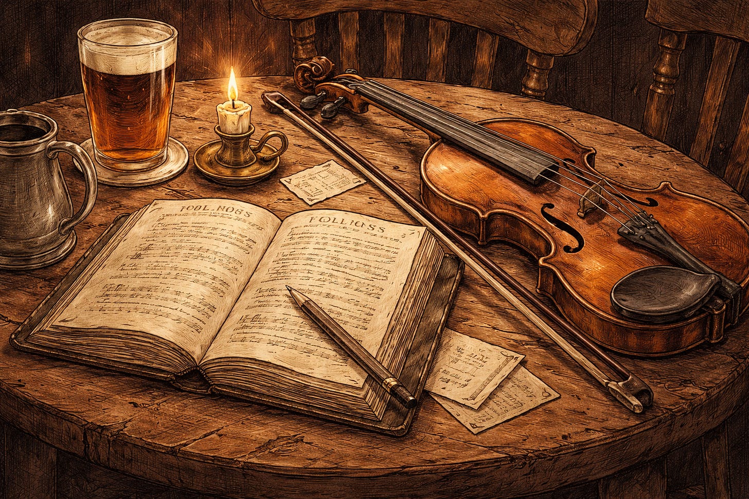 The opening line of this definition states that folk music needs to have evolved through oral transmission, by people playing songs to each other, learning them, playing them, passing them on to the next generation. Taken at face value it opens up the question of whether folk music can or should be written down? But I think the larger point here is that through time it has been often passed on from person to person casually, rather than being formally taught. Folk songs have been written down for posterity for a very long time, and the only reason I can think of to write a song down is so that somebody else could learn it. Whatever the intentions of the writers of this definition were, we shouldn’t take the term ‘oral transmission’ too literally, I am content for now with the idea that we can read it as ‘not formally taught’.